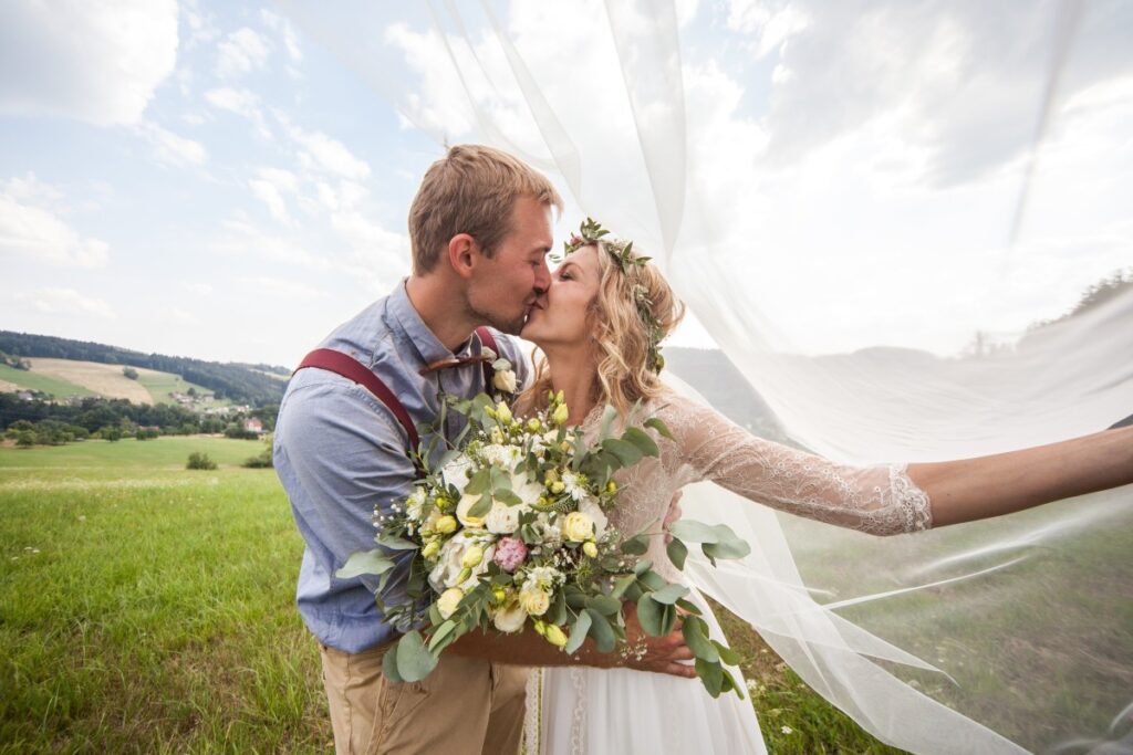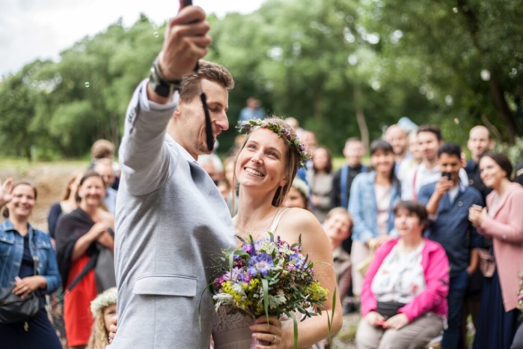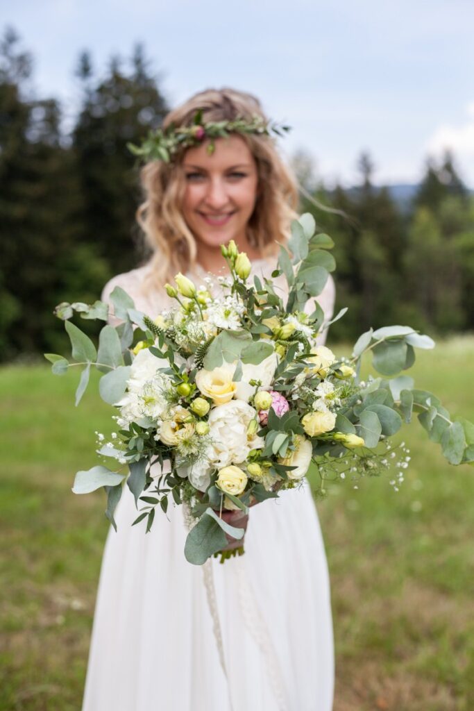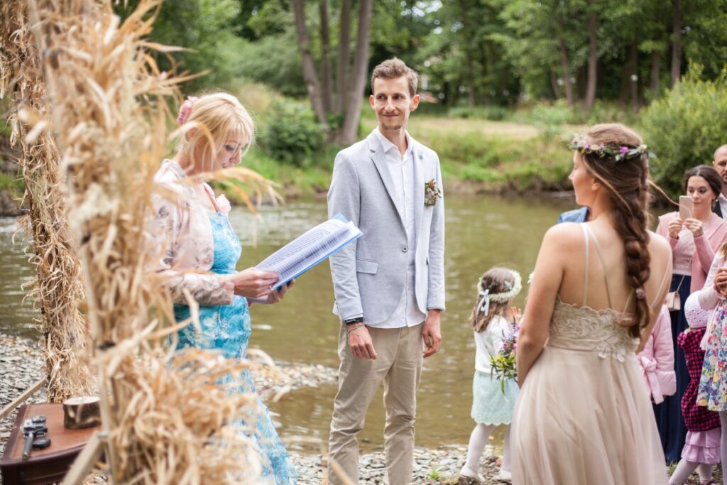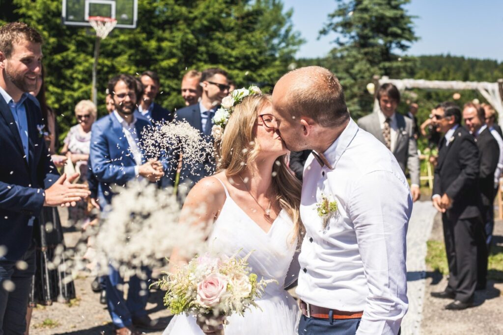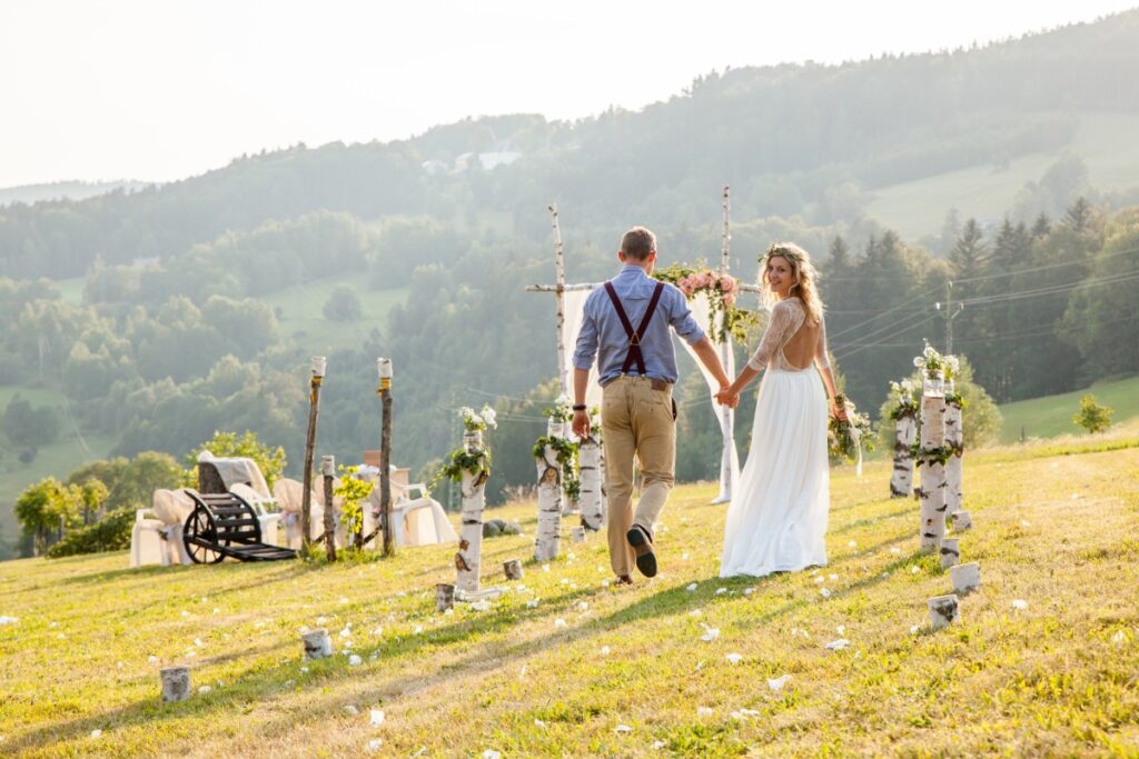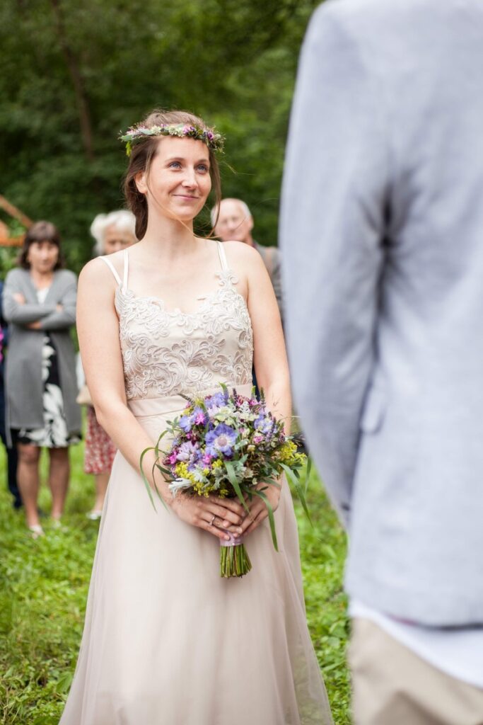 Naprosto bezstarostná venkovní svatba v Krkonoších. Myrty z borůvčí, bez bot v trávě a dokonce přišli i tři králové.