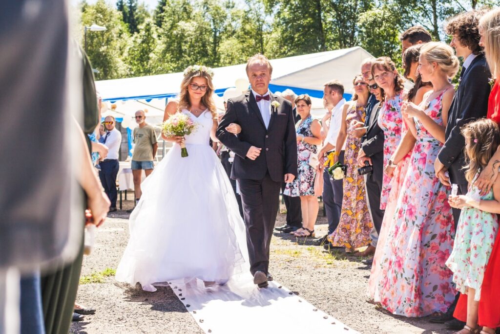 Svatba jak z amerického filmu. Nevěsta přijela v kamionu a hostina probíhala ve velkém party stanu, který dostál svému názvu a hostil velkolepou party až do rána.